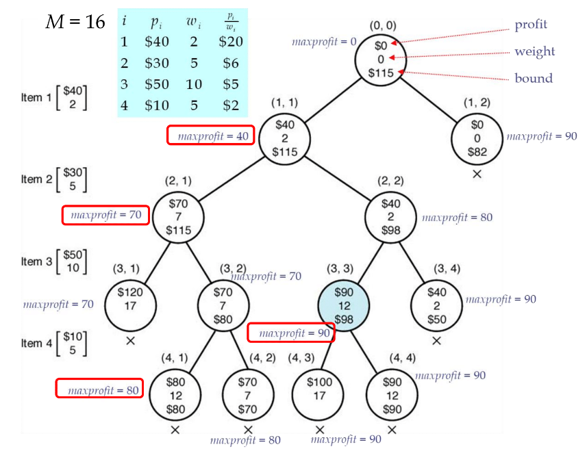 0-1 Knapsack Problem - 깊이 우선 검색을 사용한 한정분기 (Branch and Bound) 본문