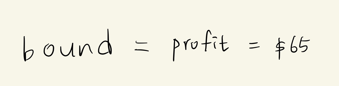 제가 처음 예제를 보며 궁금했던 점은 어떻게 (1, 2)의 maxprofit = 90 일까? 였습니다.
