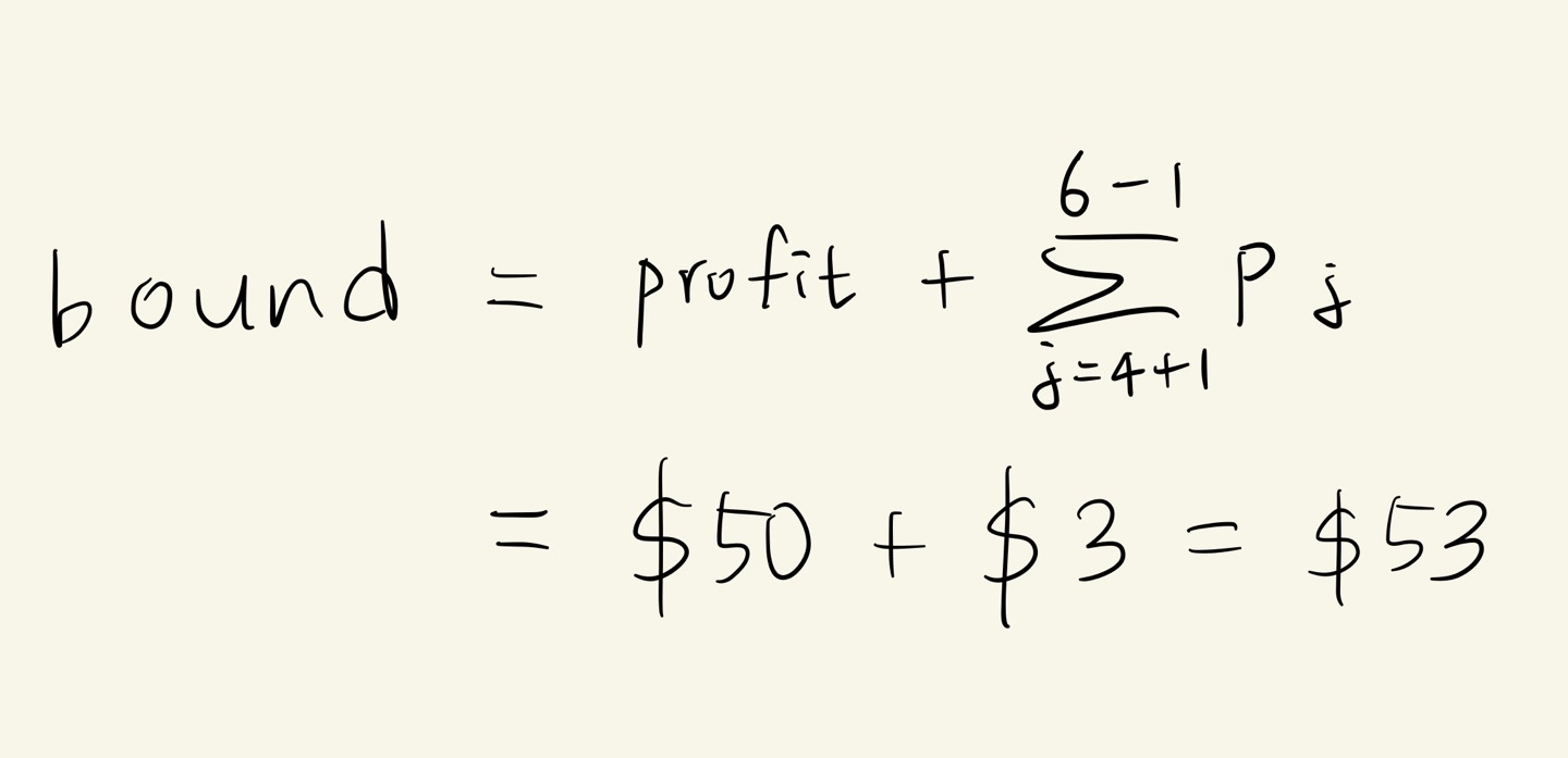 2. (4,2) 에서 j=6이기 때문에 bound 는 profit 과 같습니다.