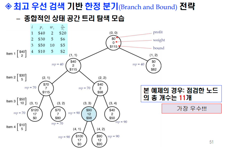 최고 우선 검색을 사용한 한정 분기(Branch and Bound) 전략을 통해