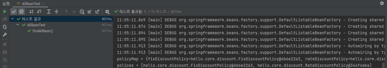 - Map<String, DiscountPolicy> : map의 키에 스프링 빈의 이름을 넣어주고, 그 값으로 DiscountPolicy 타입으로 조회한 모든 스프링 빈을 담아준다.
