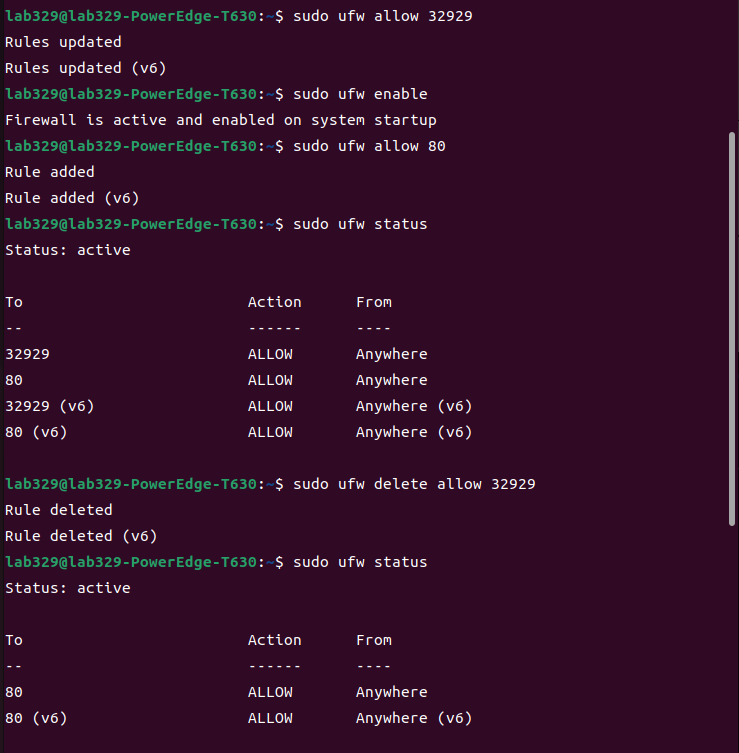 이로써 외부와 내부 모두 포트 32929를 통해 서버 컴퓨터의 웹 서버와 통신을 할 수 있게 되었다.