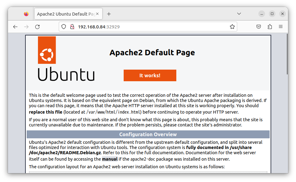 기존의 80 포트는 사라지고, 32929 포트가 새롭게 열린 모습이다!