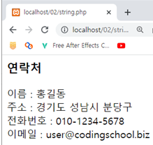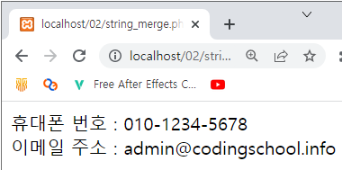 echo "휴대폰 번호 : $phone_number"."<br>";