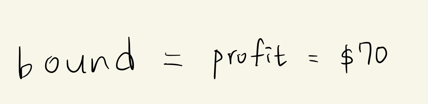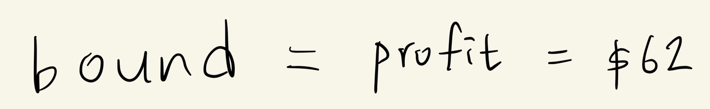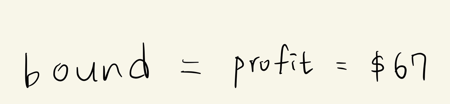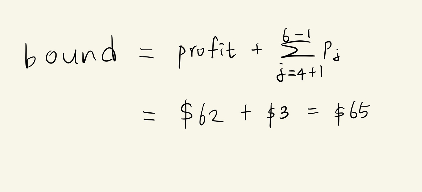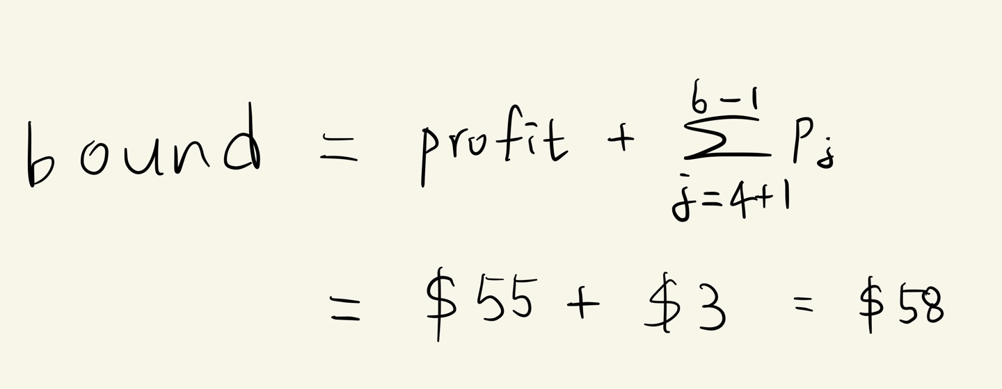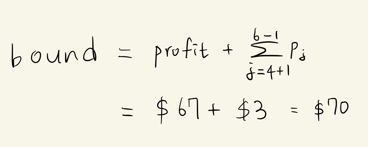 따라서 k=6이고, j=6이기 때문에 bound 는 profit 과 같습니다.