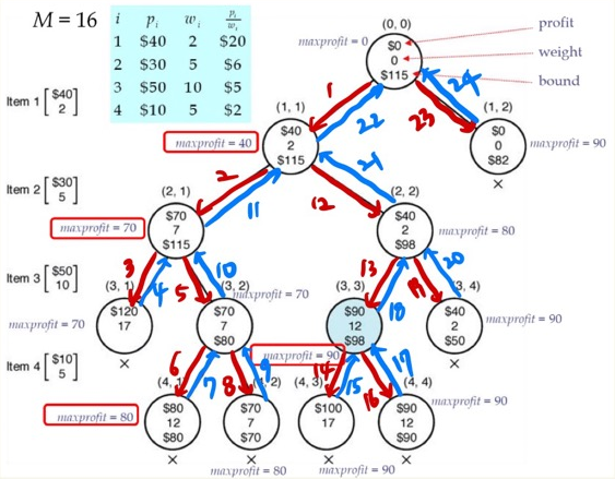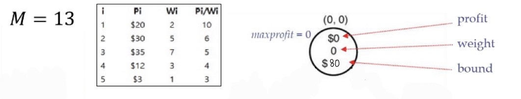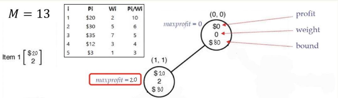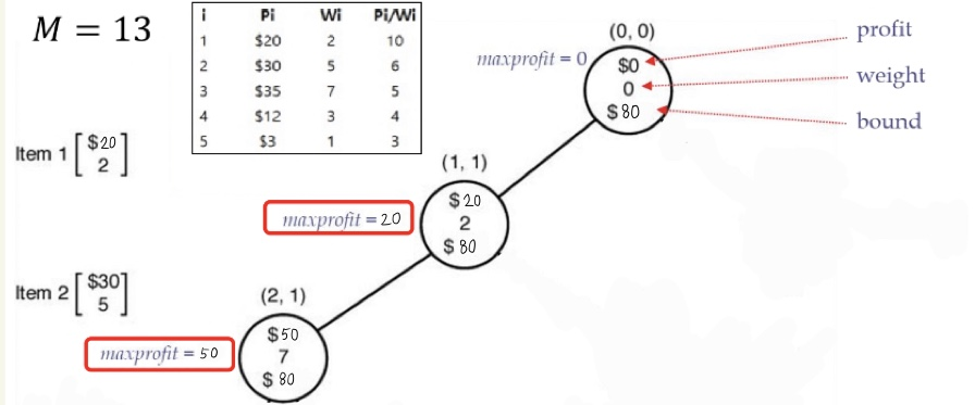 3. (weight < M) && (bound > maxprofit) 이면, 유망하다고 보고 가지를 뻗어나갑니다.