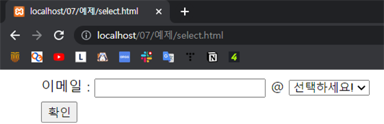 예제 7-11. 이메일 선택 박스 생성하기