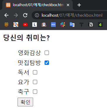 <li>축구 <input type="checkbox" name="hobby[]" value="축구"></li>