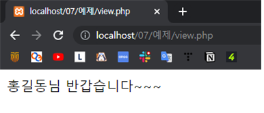 echo $name."님 반갑습니다~~~";